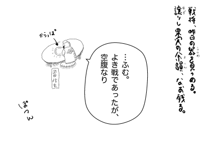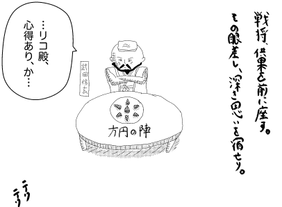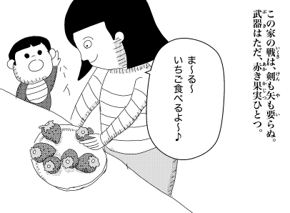 妻の戦国乱世創世記 2025.09.292025.10.17 ようこそ『妻の戦国乱世創世記』へ 戦国時代に妄想を馳せる妻リコと、巻き込まれる婿ぺいくん。 そして自由奔放な赤ちゃんまるちゃんが繰り広げる、 少し変わった日常が描かれます。 シリーズ一覧 『信玄編』 『いちご編』 『信玄編』 巻の1「風呂掃討戦記」 巻の2「風呂掃討再録」 巻の3「ぽんぽこ鳴動前線」 巻の4「風林火山鳴響之刻」 巻の5「風呂場見参之儀」 巻の6「足湯定陣之刻」 巻の7「紅痕除去之儀」 巻の8「入浴機会喪失之陣」 巻の9「入浴達成湯讃歌」 巻の10「洗髪攪乱之乱」 『いちご編』 巻の11「苺丸呑み戦記」 巻の12「口撃バナナの陣」 巻の13「血筋果実戦線」 巻の14「戦将への供果儀」 巻の15「将と童のいちご評定」 巻の16「果実譲渡の儀」 巻の17「供果円満の刻」