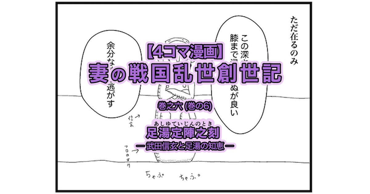 【4コマ漫画】妻の戦国乱世創世記 信玄編 巻の6 足湯定陣之刻